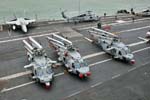 The Growler will completely replace the EA-6B in the airborne electronic attack role by 2014 and is, essentially, a Block II F/A-18F Super Hornet featuring the Improved Capability (ICAP) III system from the EA-6B. Though looking like the F/A-18F, it does feature a few external additions such as the AN/ALQ-218 receiver pods on the wingtip rails. It also carries up to five AN/ALQ-99 tactical jamming pods, the same as those carried by the EA-6B, and can employ AGM-88 HARM missiles. Unlike the EA-6B, it is also fitted with a tactical Interference Cancellation (INCANS) system which means the EA-18G can conduct voice communications with friendly forces whilst simultaneously jamming enemy radio communications. Furthermore, Admiral Gary Roughead is on record as being pleased with the performance of the EA-18G over Libya. Incidentally, the name Growler sounds pretty similar to Prowler so, as far as flight deck ops go, the Growler will have the nickname of “Grizzly”. |
