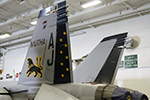 The rest of the airwing was identical, even down to specific aircraft, although the paint jobs tail paint schemes have changed somewhat. At the top of the tree for superb artwork on their CAG bird were VFA-31 Tomcatters – the tail art on Felix 100 was a work of true beauty. Running it close was Outlaw 500, the rather stunning VAQ-141 CAG bird. Sadly, both these gems were sat in the hangar following the reception of a number of VIPs/distinguished visitors. The Black Lions hadn’t really changed the design of Lion 200 but it did now include MUTHA stencilling following their winning of the coveted award – although Tanuki, the central figure, has since been ‘acquired’ through less than official means by VFA-102 Diamondbacks. |