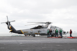 HSM-70 Spartans have a couple of firsts of their own too – not only are they the first East Coast unit to fly the new MH-60R Seahawk, they are also the first unit to deploy it aboard a carrier. The MH-60R is one of the world’s most advanced and capable naval helicopters and will eventually replace all SH-60Bs and SH-60Fs. Amongst other changes, it is fitted with an AN/APS-147 radar which is an improvement over the AN/APS-143 OceanEye fitted on SH-60Bs and, like the SH-60B before it, its primary missions are anti-submarine and anti-surface warfare. For these missions, it can be armed with Mk 54 Lightweight Hybrid Torpedoes and AGM-114 Hellfire missiles. As they have replaced SH-60Bs, the HSM-70 MH-60Rs are deployed aboard most of the strike group escort ships such as DDG-103 and a number are embarked aboard CVN-77. |