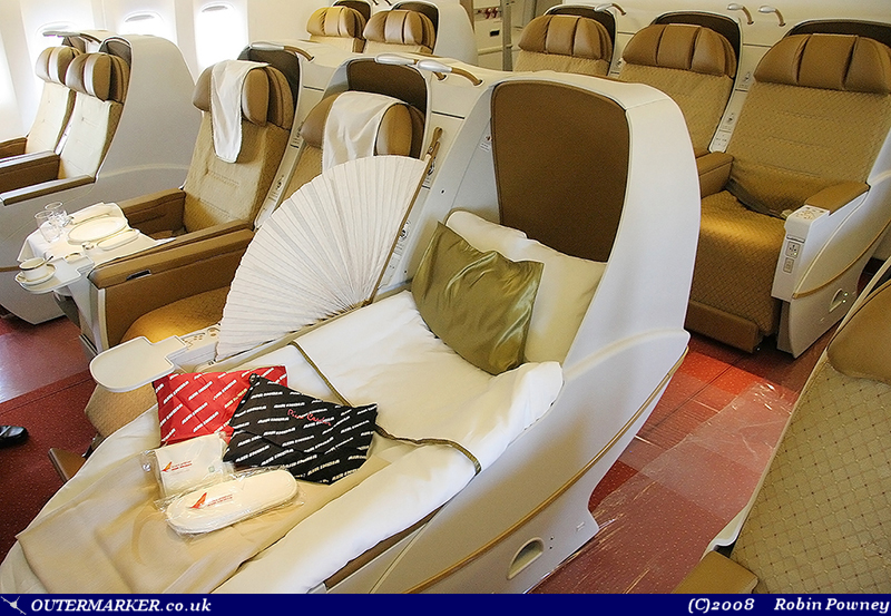 After kindly being offered a quick look round the inside of Jammu & Kashmir, the pristine Air India 777, it would have been rude to have declined and I’ve now decided first class on an Air India 777-300ER seems to be a rather fine way to travel; business class would do at a push though! It may be the fact that, taking the first flight as its date of birth, this particular jet was the ripe old age of thirteen days old but the cabin really does have to be seen to be believed. Yes, the fancy Bose noise cancelling headphones are quite common amongst a number of airlines in their first or business class cabins but you also get a set of snazzy designer pyjamas to change into if you want and as if the lay-flat seats-that-are-beds aren’t enough, the TV is a little more than interesting. We’ve probably all seen the stuffy little seat-back screens on most airlines so how would a 22” widescreen HD TV with an audio-video on demand system take your fancy? I kid not, each ‘seat’ is set in what can only be described as a cocoon and has its own HD TV that is not all that far short of two foot!! The business class cabin is almost as good but doesn’t have quite the same luxury add-ons although a neat feature, as simple as it may sound, is that each seat has two bottles of water in the back of the seat in front – to stave off dehydration, you have to drink and this way you don’t have to keep summoning over a flight attendant. |