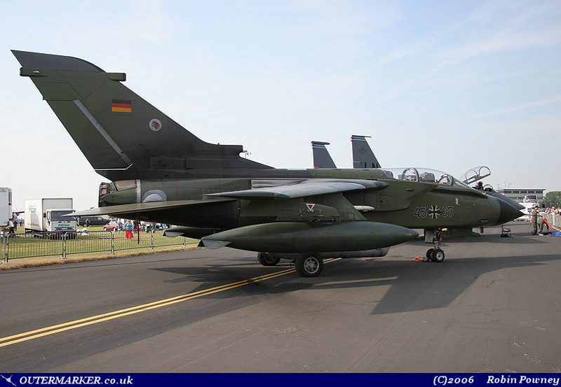 This year’s show “clashed” with two major European events being held in France and Belgium which together had managed to secure most of the foreign military display items, but it wasn’t a complete loss for the Waddington organisers. The Austrian Air Force sent a pair of Saab 105OEs, the Hellenic Air Force sent an RF-4E Phantom II from 338 Mira resplendent in a special colour scheme, the Royal New Zealand Air Force sent a 40 Sqn Boeing 757 and a 5 Sqn Lockheed P-3K Orion, the French Air Force sent a pair of EAC00.314 Alpha Jets, the German Air Force sent an AkG51 Tornado IDS, the Royal Netherlands Air Force sent a pair of F-16’, and the Polish Navy sent a M-28 Bryza-1R. The Netherlands F-16AM variant, is noteworthy of mention for it carried MiG kill markings to denote its downing of a Serbian Mig-29 during Operation Allied Force in March 1999. The USAFE contribution was a pair of F-15E Strike Eagles of the 492nd FS / 48FW based at RAF Lakenheath and a KC-135R of the 351st ARS / 100th ARW based at RAF Mildenhall whilst NATO sent one of their E-3A Sentry aircraft. |